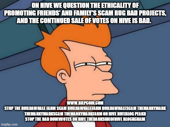 On Hive we question the ethicality of promoting friends' and family's scam rug bad projects, and the continued sale of votes on Hive is bad.