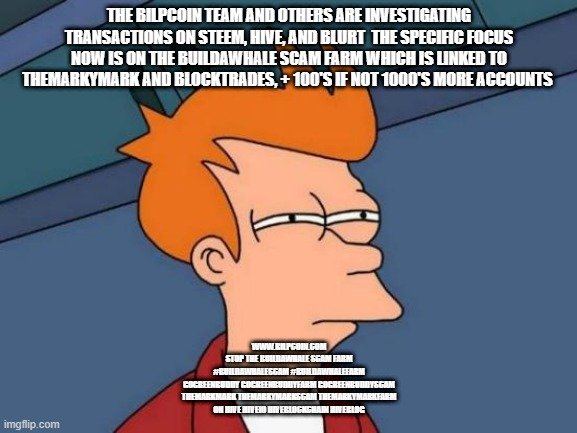 The Bilpcoin team and others are investigating transactions on Steem, Hive, and Blurt the specific focus now is on the Buildawhale scam farm which is linked to Themarkymark and Blocktrades, + 100's if not 1000's more accounts