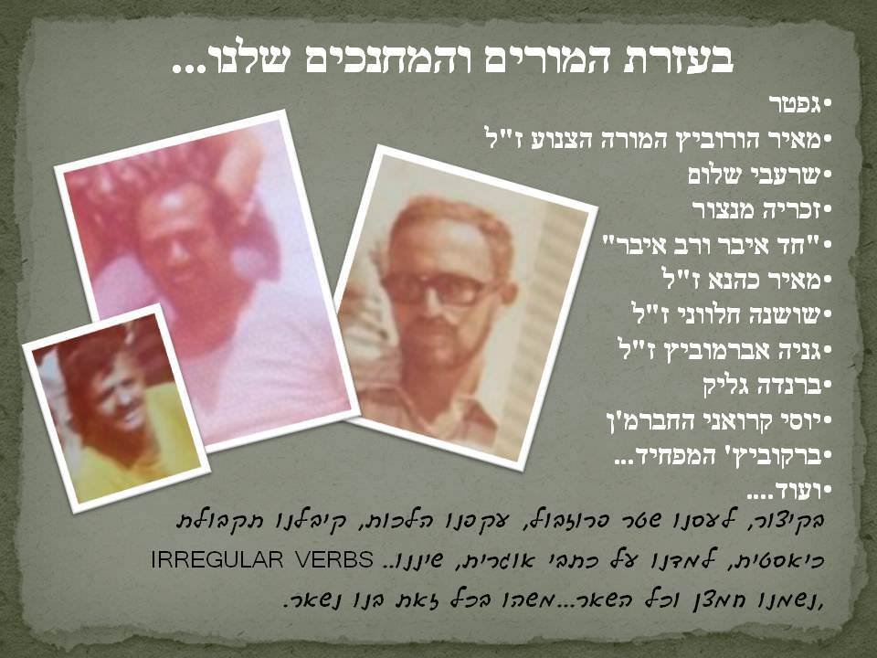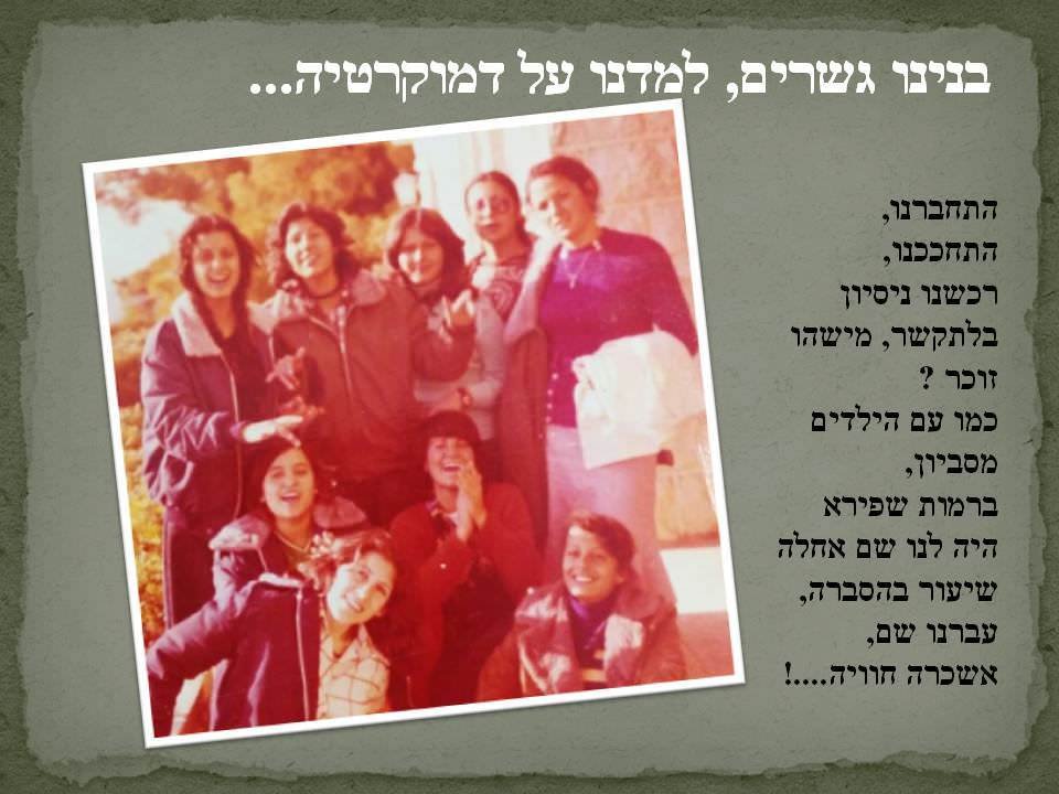 אני מביאה מצגת שהכנתי לפני הפגישה שהייתה לי עם הכיתה שלי בתיכון