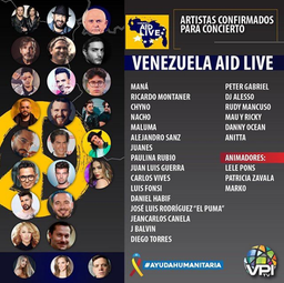 brotherscam(25)•in #spanish•2526 days ago¡¡Venezuela Aid Live Gran concierto!!Hasta ahora son 24 los cantantes que han confirmado su participación en el concierto por el ingreso de la ayuda humanitaria a Venezuela, el concierto llamado "V...11$0.00brotherscam(25)•in spanish•2526 days ago¡¡Venezuela Aid Live Gran concierto!!Hasta ahora son 24 los cantantes que han confirmado su participación en el concierto por el ingreso de la ayuda humanitaria a Venezuela, el concierto llamado "V...11$0.00