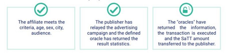 Every advertiser by using SaTT Smart Contract can create advertising campaigns whose conditions for participation and results will be stored in distributed decentralized records (blockchain). It will be much safe and comfortable!The main functions for adverisers: