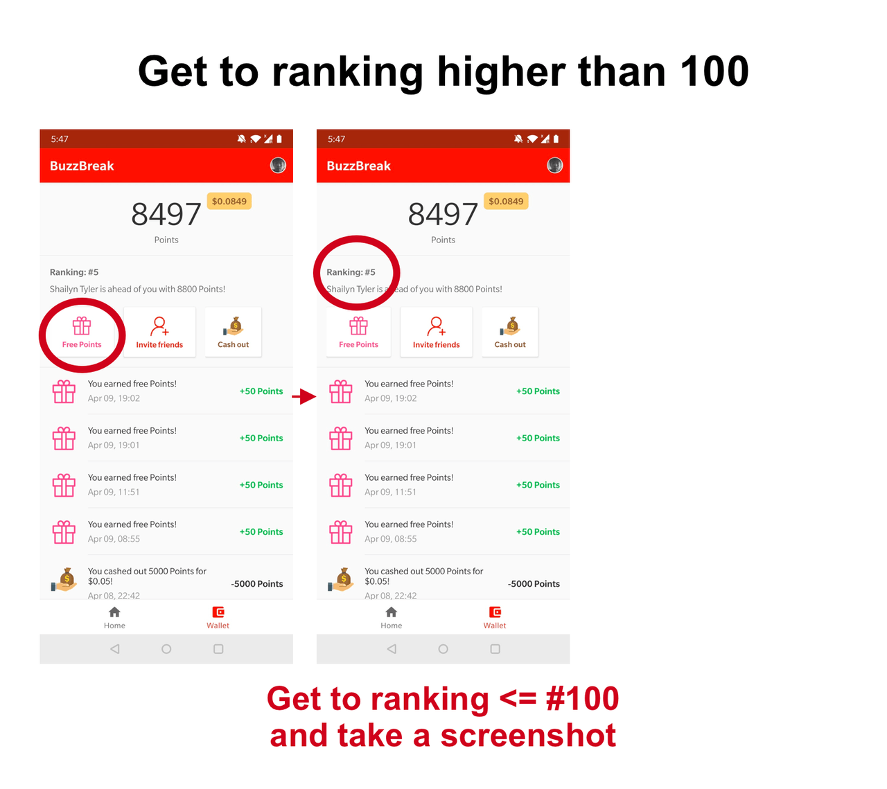 We will reward you based on your ranking in BuzzBreak (payout in 7 days):