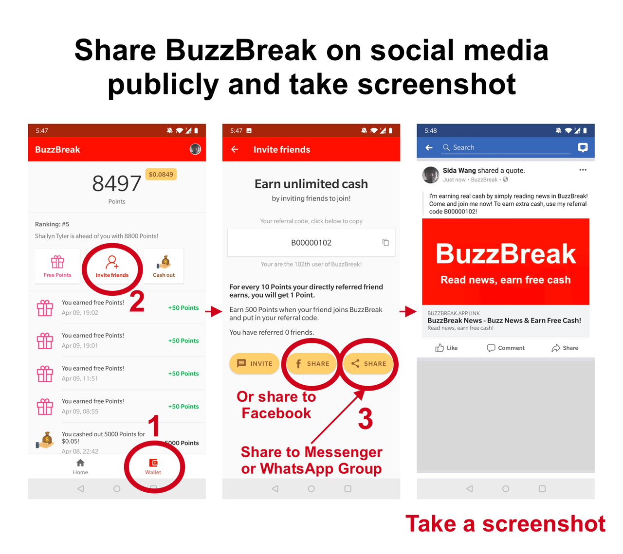 You can earn Points to do that. You can watch videos in BuzzBreak to earn Points (as signup bonus, you can earn 3000 Points for watching the first 5 videos). You can also earn Points by inviting your friends to join BuzzBreak using your referral code.