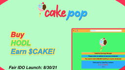 cakepop(25)•in #hive-167922•1602 days ago$CAKEPOP Token Launch - Strategic Partnership With CubFinanceWe’re excited to announce the launch of CAKEPOP — a new dividend paying yield token on the Binance Smart Chain! The mission of CAKEPOP is to fulfill our dream o...46cakepop(25)•in hive-167922•1602 days ago$CAKEPOP Token Launch - Strategic Partnership With CubFinanceWe’re excited to announce the launch of CAKEPOP — a new dividend paying yield token on the Binance Smart Chain! The mission of CAKEPOP is to fulfill our dream o...46