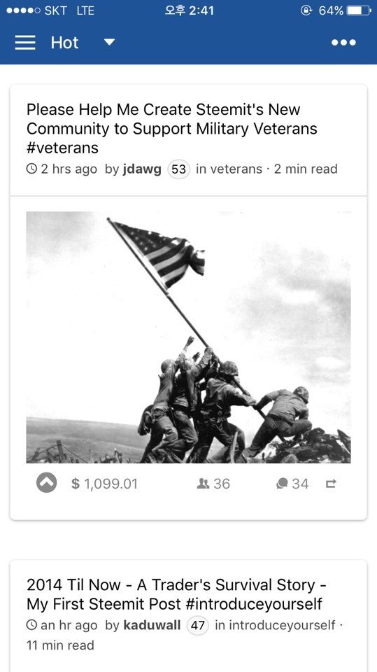 첫번째 문제를 해결 할 방법이 없을까 알아보다 스티밋 어플이 있는걸 알게 됐습니다. 신나서 바로 설치했는데... 너무하다 싶었습니다. 느리고 렉이 걸려서 계속 튕겨서 실사용이 불가능 했습니다. 처음 사용한건 2주?3주 전이었고 그 뒤로 사용 하지 않다가 이 글을 작성하기 위해서 다시 들어갔는데 예전보다는 훨씬 나아졌습니다. 렉도 거의 사라졌고 최적화가 된 느낌입니다. 모바일 어플이니 새로운 글을 보려면 손으로 화면을 터치하고 위로 쭉 올리면 글들이 아래로 내려가는 구조입니다. 그런데!!! 손으로 잡고 쭉 내리는 순간 글이 클릭되어서 자꾸 원치 않는 게시물로 들어가짐을 확인했습니다. 조금 더 조정이 필요할 것 같습니다.