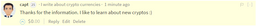 capt(25)•in #steemit•3144 days agoSuggestion: Add a short bio to commentsHi everyone! I am still new on this platform, but I have an idea to make this platform slightly better. The idea: Add a short bio to comments When you are comme...53$0.00capt(25)•in steemit•3144 days agoSuggestion: Add a short bio to commentsHi everyone! I am still new on this platform, but I have an idea to make this platform slightly better. The idea: Add a short bio to comments When you are comme...53$0.00