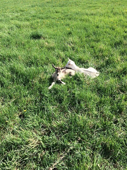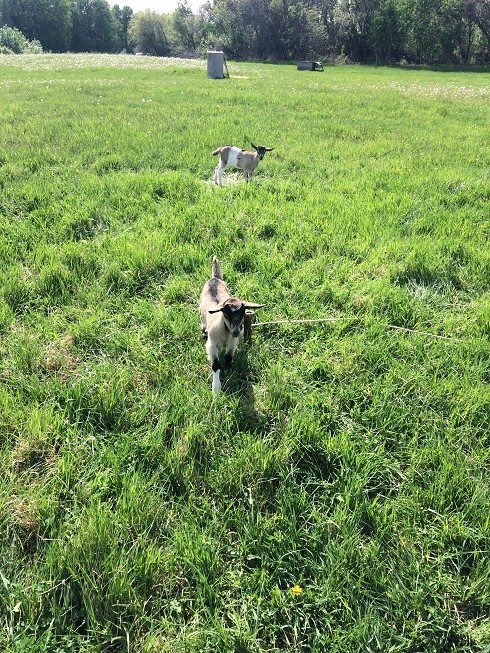 Here are the baby goats. They are doing well. They have begun to eat grass and graze with the rest of the heard. I am going to begin to milk their mama's Saturday morning. I will milk the mama's in the morning and the babies will have milk for the rest of the day. Their mama's are beginning to wean them so no is the perfect time to begin the milking process.