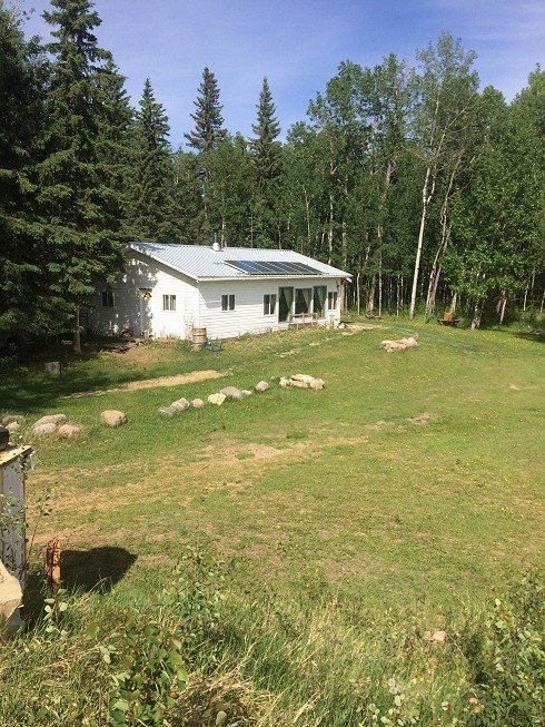 This is my mom's house. She lives out here with us so we can help her with various things. She is completely off grid as well. Her house is a traditionaly builtl house with a cement floor. The cement helps her store as much heat in it as possible. So her house is just behind the earthship. I am standing on the end of the earthship taking this photo.