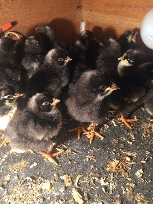 It is hard to get a picture of the baby chicks. They are still in the brooder and it is a small enclosed space. They are beginning to get their feathers now. I don't think you can see that in this picture.