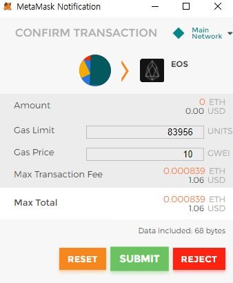 ① GET EOS TOKEN 으로 투자할 이더리움을 보내는 과정에서 Gas Price를 낮아 전송되지 않는다