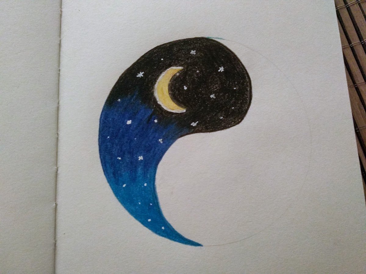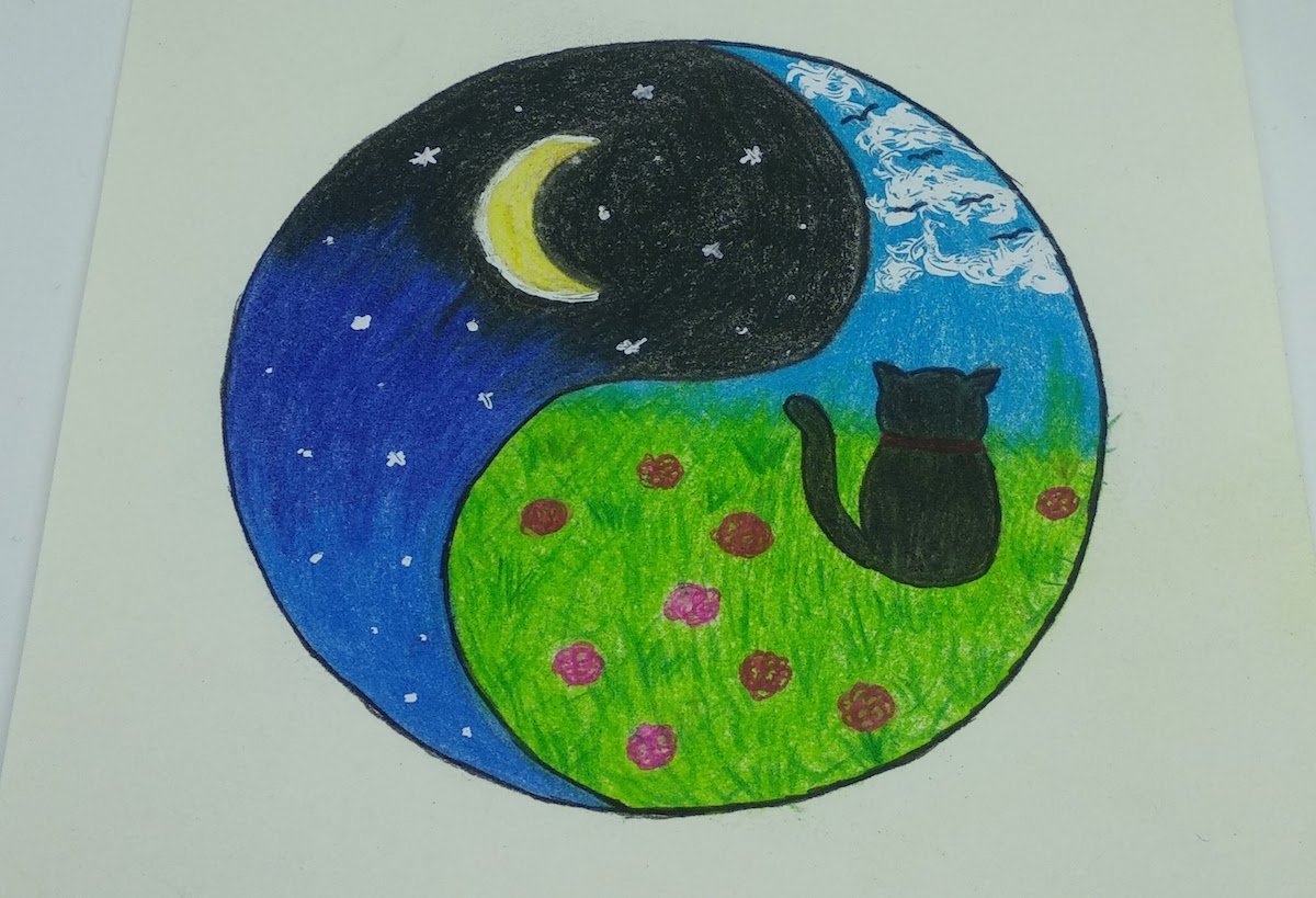 The work is done with crayons. Below are some pictures from the drawing process: