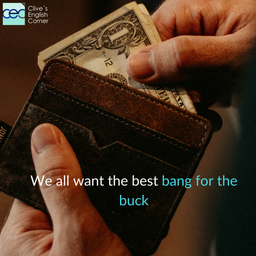 clivealb(25)•in #busy•2737 days agoBang for your buck(English idioms)(frases idiomaticas en ingles)Hello everyone welcome to another Clive's English Corner's post! Today's idiom is: Bang for the buck Original Photo credit We are always loo...2clivealb(25)•in busy•2737 days agoBang for your buck(English idioms)(frases idiomaticas en ingles)Hello everyone welcome to another Clive's English Corner's post! Today's idiom is: Bang for the buck Original Photo credit We are always loo...2