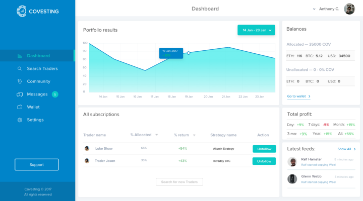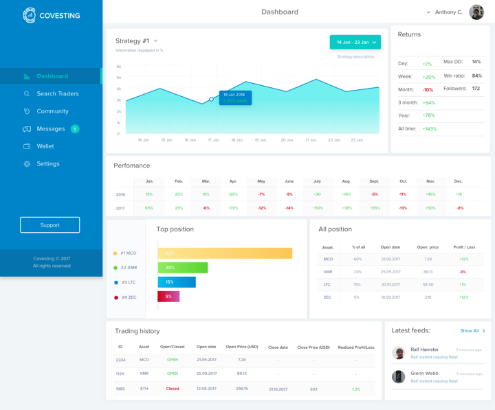 Covesting平台的投资者仪表板具有优雅、简单的用户界面