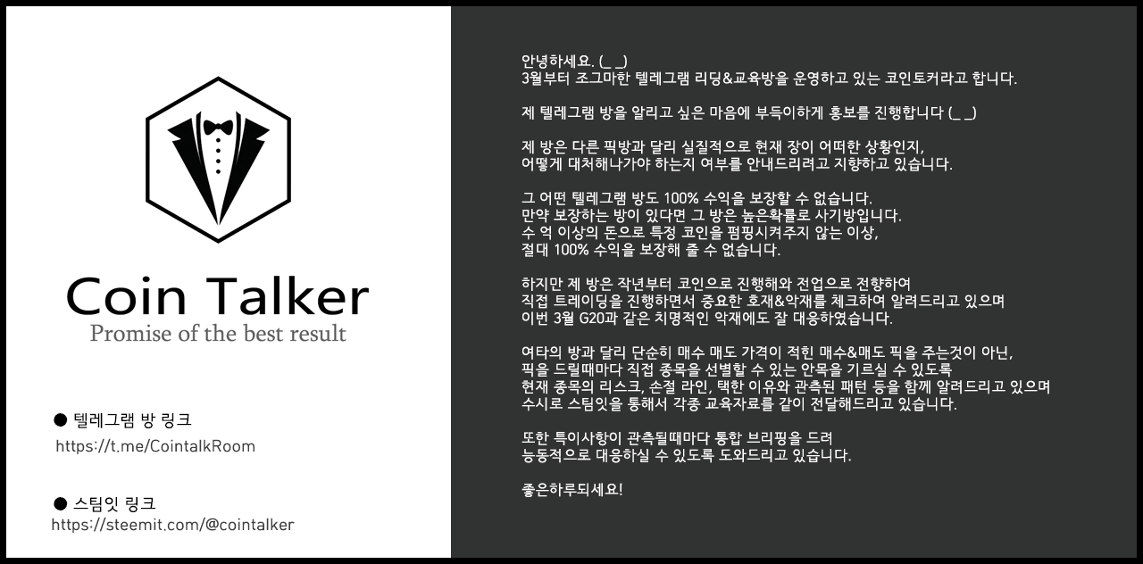 코인토커 텔레그램 방 : https://t.me/CointalkRoom