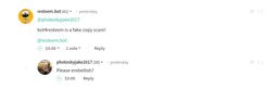 bot4resteem(-25)•in #news•2897 days ago@resteem.bot scam blameHi everyone! @resteem.bot is blaming us scammer for no reason while we are just providing our service. he commented on @photosbyjake2017 that "@bot4resteem is f...10bot4resteem(-25)•in news•2897 days ago@resteem.bot scam blameHi everyone! @resteem.bot is blaming us scammer for no reason while we are just providing our service. he commented on @photosbyjake2017 that "@bot4resteem is f...10