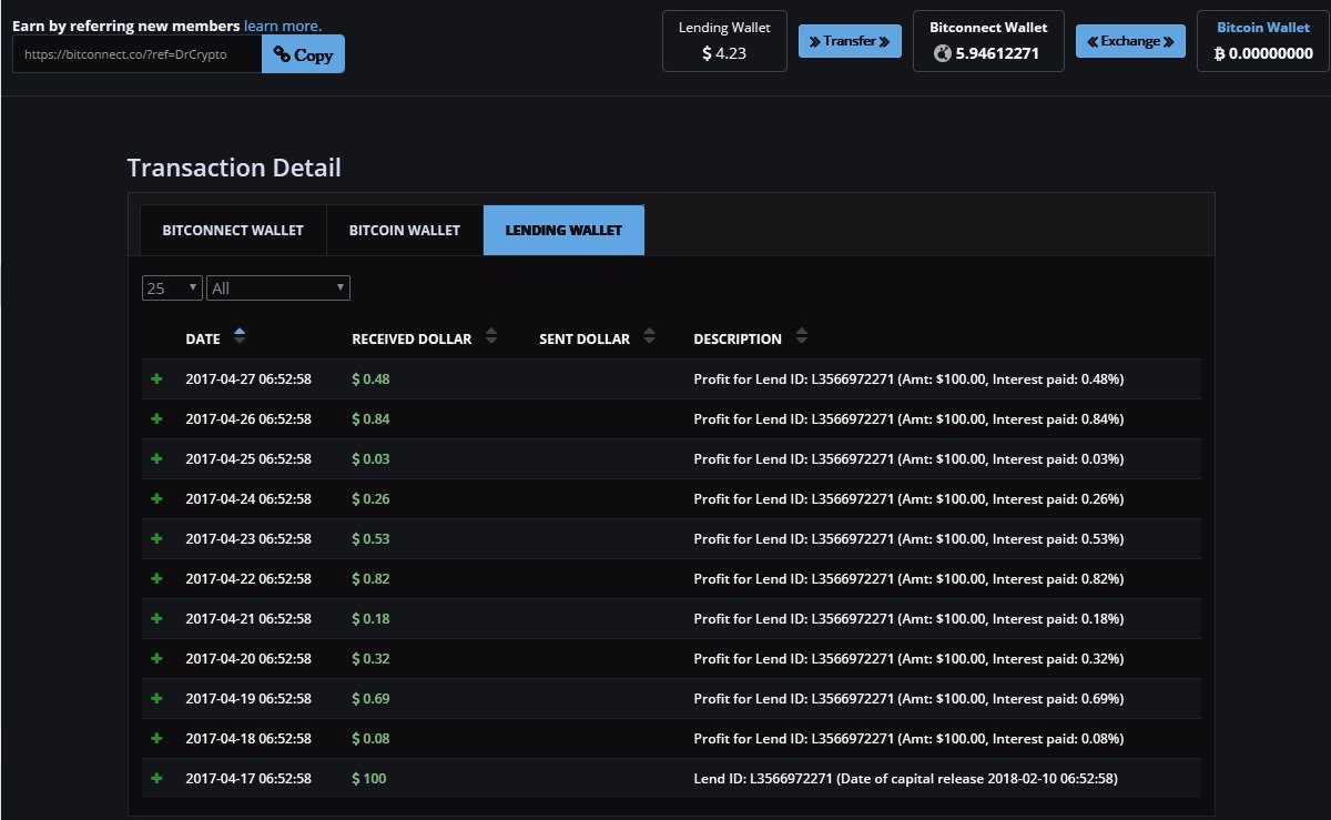 As you know I've been posting my progress on a $100 loan in Bitconnect but, flags and accusations have been raised here on Steemit. Well, I will continue posting my progress because it helps people see what Bitconnect is about and I will REMOVE my referral links to Bitconnect. Quite frankly, I am glad no one has signed up using my referrals because it helps show that money can be made just by loaning.