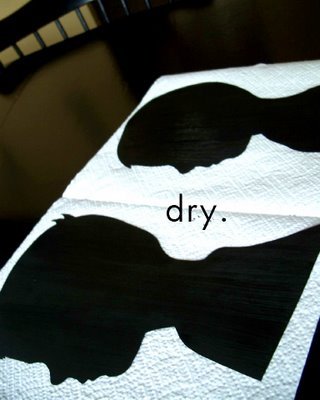 - Turn the silhouette photo side down onto a paper towel. Then, apply an even layer of black paint (you can use any color).