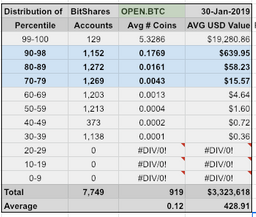 cryptick(25)•in #bitshares•2541 days agoSome Statistics on the 4,000 OPEN.BTC holdersLet's look at some basic statistics on the Open.BTC Open Ledger's Bitcoin on the BitShares Exchange. In order to better understand this coin, we need to start w...1cryptick(25)•in bitshares•2541 days agoSome Statistics on the 4,000 OPEN.BTC holdersLet's look at some basic statistics on the Open.BTC Open Ledger's Bitcoin on the BitShares Exchange. In order to better understand this coin, we need to start w...1