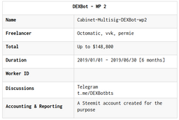 cryptick(25)•in #bitshares•2589 days agoBitShares DEXBot Wp2 Worker ProposalThis Worker Proposal will continue the DEXBot Project. Over the past year the DEXBot team has built a basic market making liquidity program (a trading bot) and ...0cryptick(25)•in bitshares•2589 days agoBitShares DEXBot Wp2 Worker ProposalThis Worker Proposal will continue the DEXBot Project. Over the past year the DEXBot team has built a basic market making liquidity program (a trading bot) and ...0