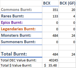 beta-burner(25)•in #splinterlands•1997 days agoBeta Burner Update (10) Total Burnt: $35.48 (484 BCX)Hey guys! This is just an update for the @beta-burner initiative. If you're not sure what this is about, please have a read of this article! My apologies it's b...1beta-burner(25)•in splinterlands•1997 days agoBeta Burner Update (10) Total Burnt: $35.48 (484 BCX)Hey guys! This is just an update for the @beta-burner initiative. If you're not sure what this is about, please have a read of this article! My apologies it's b...1