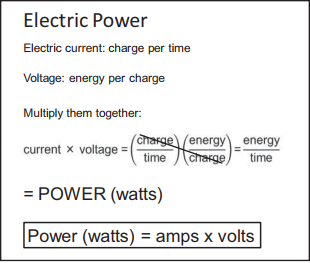 Multiplying current (flow of charge) by voltage (push) gives us a third important quantity, energy per time, or electric power. Power is the rate at which a system delivers, consumes, loses, produces, or transfers energy from one form to another. Power is measured in watts (W).
