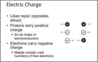 Electric charge is a fundamental property of matter. It comes in two varieties: positive and negative. The protons that are in atomic nuclei are the main carriers of positive charge, and electrons are carriers of negative charge. There are vast numbers of free electrons in metals.