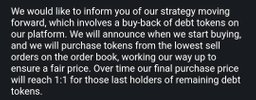 cube4stake(25)•in #hive-167922•994 days agoStakecube policy explained and another report/It turns out I was right! The Stakecube will buy back debt tokens purchasing them from the market (filling lowest asks). This is good as long as these debt toke...1cube4stake(25)•in hive-167922•994 days agoStakecube policy explained and another report/It turns out I was right! The Stakecube will buy back debt tokens purchasing them from the market (filling lowest asks). This is good as long as these debt toke...1