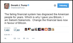 cyruscoins(25)•in #bitcoin•2934 days agoWill Satoshi Nakamoto Kill Cryptocurrency?Back in April 2017 Donald Trump tweeted that the "failing financial system had disgraced american people for years. That is why I gave you Bitcoin. I am Satoshi...12$0.00cyruscoins(25)•in bitcoin•2934 days agoWill Satoshi Nakamoto Kill Cryptocurrency?Back in April 2017 Donald Trump tweeted that the "failing financial system had disgraced american people for years. That is why I gave you Bitcoin. I am Satoshi...12$0.00