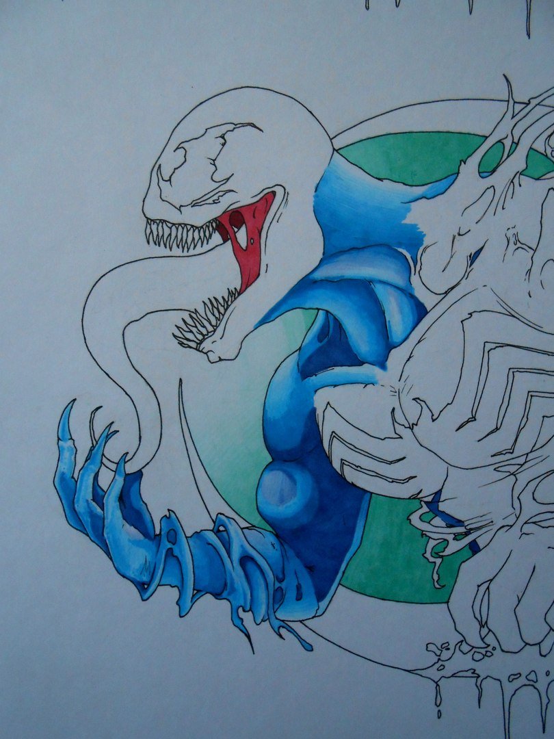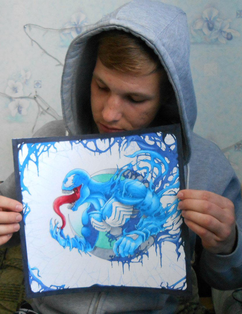 So I finished my first test drawing with new markers tools. I received them at the post office in the evening ... so on the next day early in the morning I sat down to think about what kind of drawing I should test them for. It took me half a day to do this! because I did not get any inspiration ... but somehow closer to the evening I thought, why not try venom! because it can use blue blue colors (which I love to use). And in the end I started it with inspiration .... It would take me half a day to get used to markers. Toward the end of the day, I mastered the specifics of the technique of these markers, and I was very surprised from receiving a new experience, which at first even gave a good result. Here is an illustration of the venom was very unusual. In addition, I immediately added a crescent moon that fits into it! and its symbiotic stretching processes, from which it gets out, this is already the addition of the dynamics of my style. Well, and the fact that already on the Internet there is a trailer for the upcoming film.