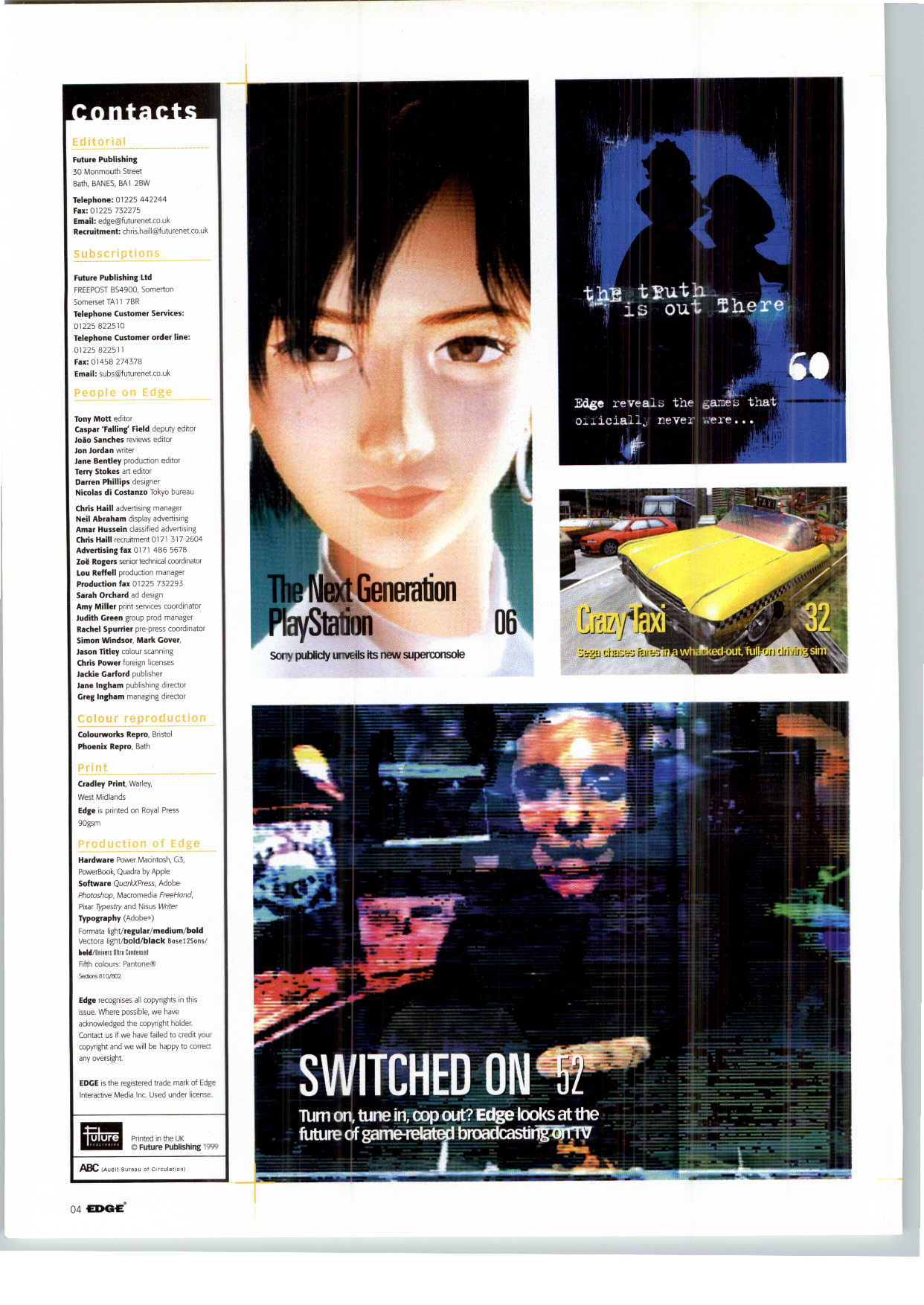 Edge was a multi-format videogame magazine published in the U.K. However, Next Generation was basically a U.S. version of Edge and they shared much of the same content. The April 1999 issue of Edge includes: