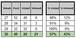 Below you can find the stats for Week #30:
