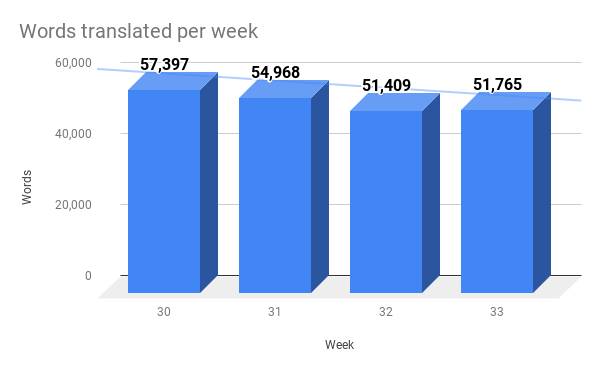The period covered in this report preceded the introduction of max caps per team, but from the stats below you can see why we had to introduce it. A whopping 49% of the contributions were not voted in the week from January 27 to February 2. To help counter balance this problem the DaVinci team has created a voting trail that votes all your translation contributions, you can follow it on steemauto, it's called davinci.vote.