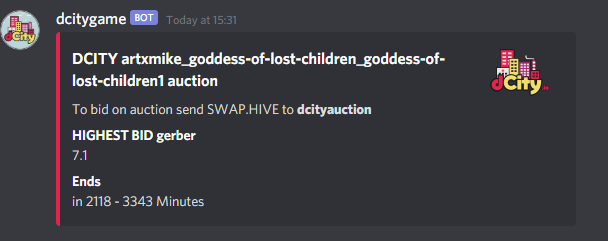 Alternatively, you can bid via direct transfer and then track the auction progress on the dCity discord server.