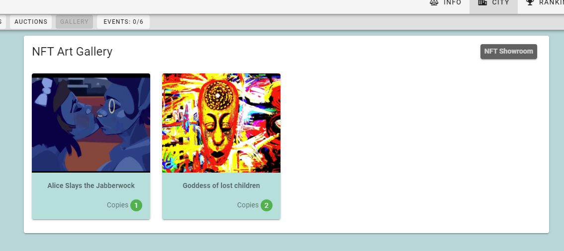 For managing your art collection, dCity.io will redirect you to the NFT Showroom webpage.