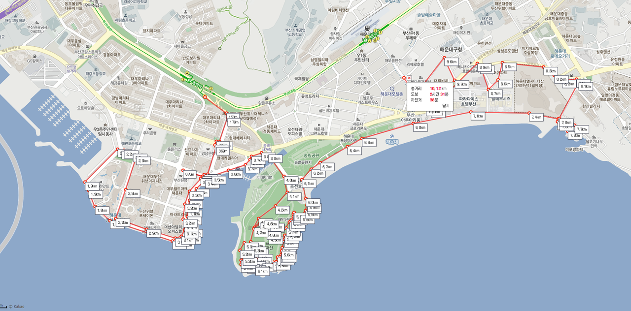 부산 동백역-마린시티-영화의거리-동백섬-해운대해수욕장-아쿠아리움-유람선-해운대전통시장