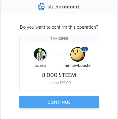 Once you're happy with your chosen amount of SP and payment rate, you can continue to pay via either Steemconnect or Steem Keychain.