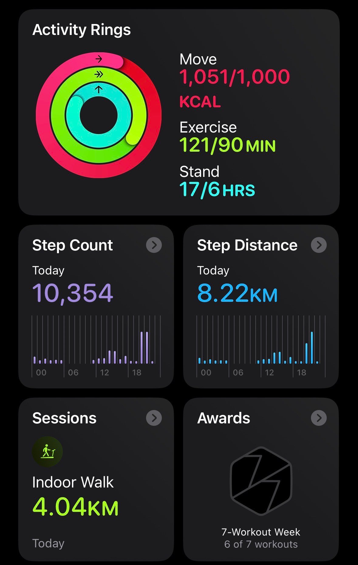 A pretty good day once again, closed off all my apple rings so i’m happy with that. I did feel a lack of energy a lot today, haven’t had much of an appetite past few days from outside issues that just plague my mind, luckily though i’m still keeping up the workouts but definitely need to try eat more especially if I don’t want all my workouts to be for nothing.