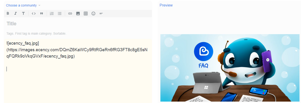If you want to write some documents that will include source code examples or quotes Ecency helps you to write them without any difficulties through these tools:
