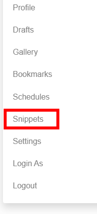 Snippets. If you go to your profile you can create some snippets that you would like to add in your content easily every time you want.
