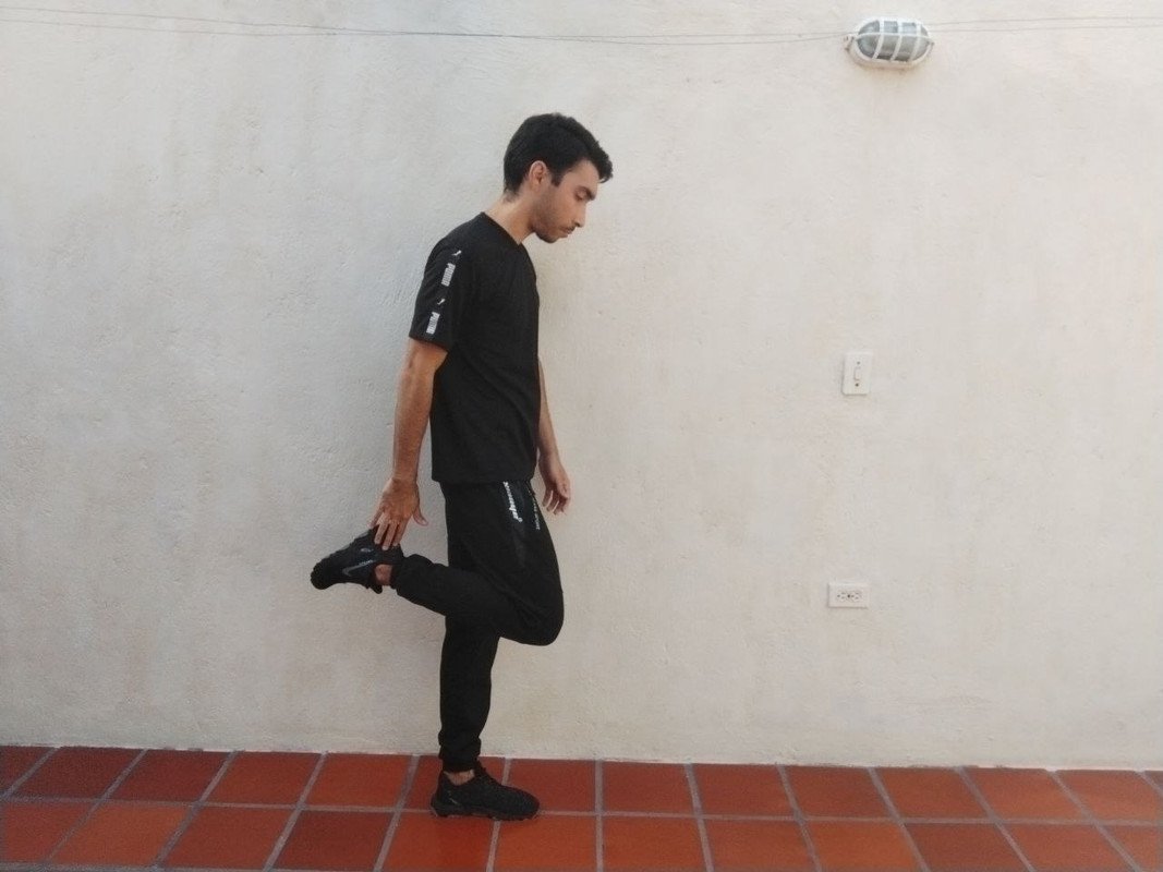 As the next exercise we will take the ankles backwards raising them to the height of the buttocks, we will keep this movement for 30 seconds, depending on the physical condition will define the speed of the same, in my case I do it in a more controlled way due to a knee injury I suffered years ago.