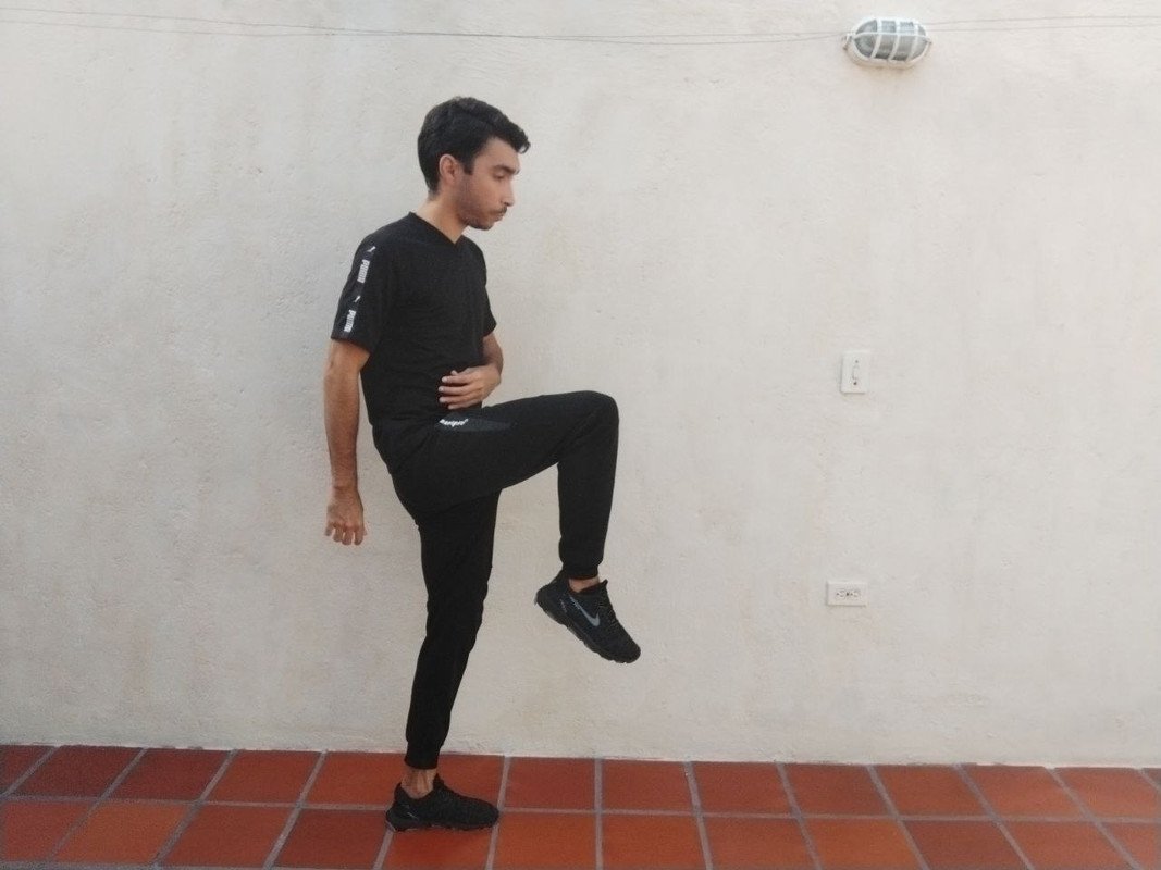 Por ultimo y para poner fin al trabajo de movilidad o calentamiento haremos elevaciones o patada elevadas, para esto elevaremos nuestras piernas a la altura del pecho o lo mas cercano a este llevando un ritmo controlado, este ejercicio lo suelo utilizar mucho, sobre todo cuando voy a jugar futbol, para entrar en calor es muy bueno.