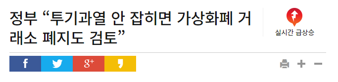 (제목: 정부, 투기 막기 위해 가상화폐 거래소 폐쇄까지 검토)