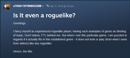 elseleth(25)•in #gaming•2774 days agoThe Needless Battle Lines of Genre DivisionA few days ago, this gem of a Steam discussion got referenced in a forum thread about Caves of Qud that I follow: If you're literate in the vocabulary of comput...6elseleth(25)•in gaming•2774 days agoThe Needless Battle Lines of Genre DivisionA few days ago, this gem of a Steam discussion got referenced in a forum thread about Caves of Qud that I follow: If you're literate in the vocabulary of comput...6