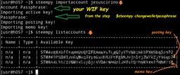 bekirsolak(25)•in #utopian-io•2850 days agoSteempy importaccount ErrorExpected behavior I am working on Python steem module to create a auto SBD transfer function. You need to create wallet on steempy to send SBD to another accoun...97$0.00bekirsolak(25)•in utopian-io•2850 days agoSteempy importaccount ErrorExpected behavior I am working on Python steem module to create a auto SBD transfer function. You need to create wallet on steempy to send SBD to another accoun...97$0.00