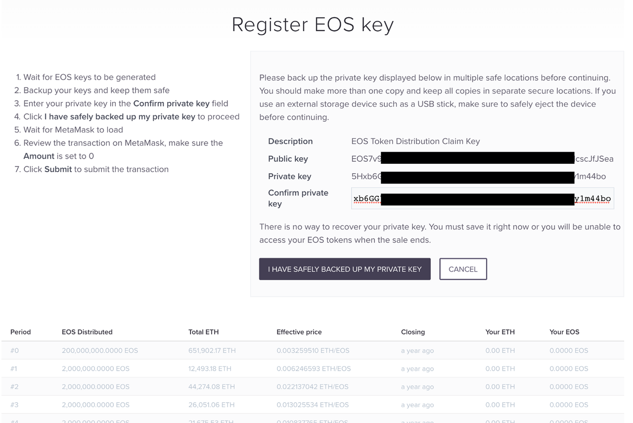 CHANGE YOUR EOS KEY 버튼으로 변경된 것을 보실 수 있습니다.하지만!! 가장 정확한 확인 방법이 있는데요~~