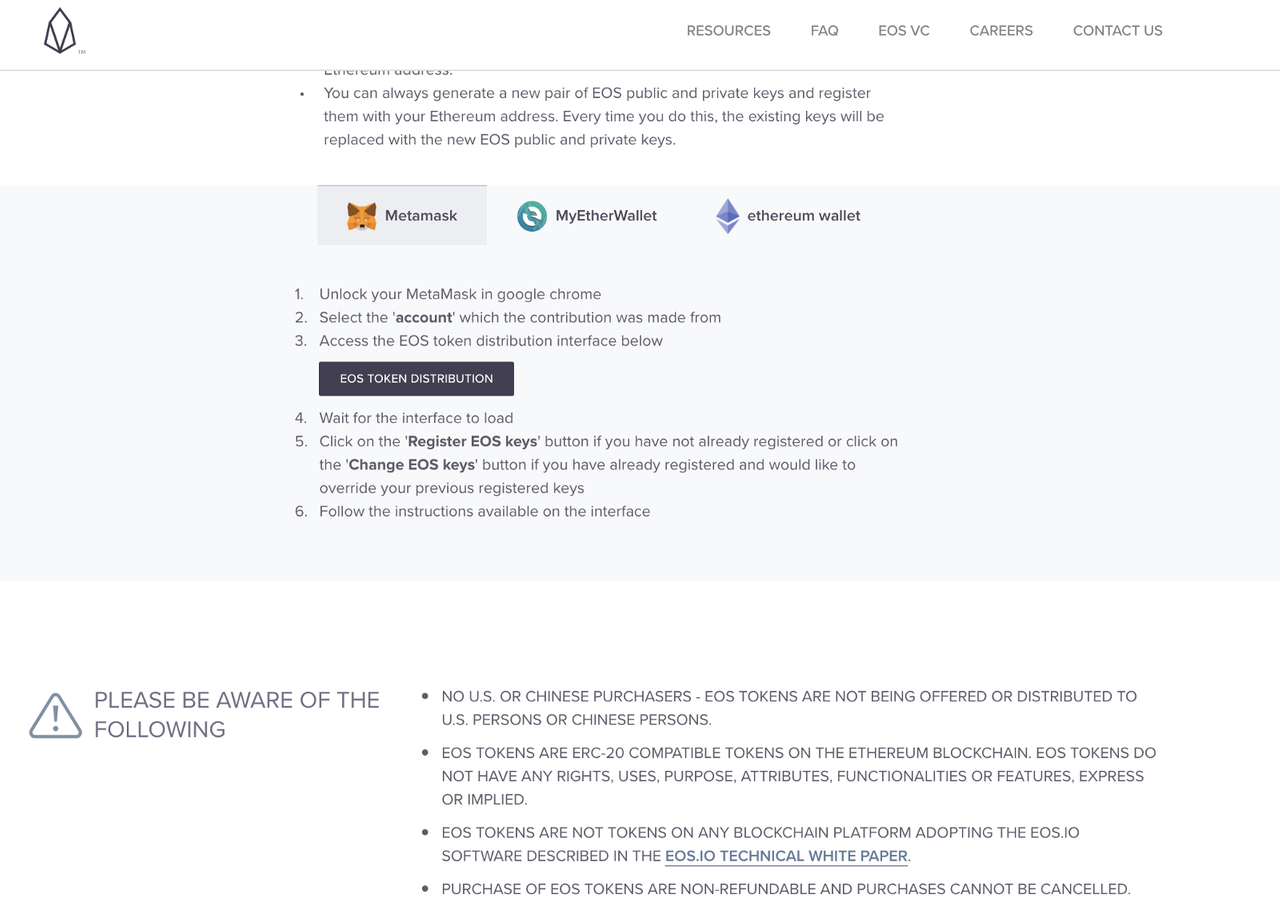 3번에 있는 EOS TOKEN DISTRIBUTION 버튼을 눌러주세요.