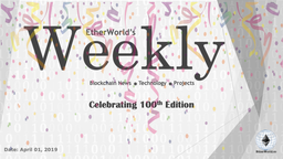 etherworld(25)•in #ethereum•2483 days agoEtherWorld's weekly: Edition 100Dear Reader, With immense pleasure, I welcome you to join us in the celebration of 100th edition of EtherWorld's Blockchain Weekly. Looking back at Edition 01, ...11$0.00etherworld(25)•in ethereum•2483 days agoEtherWorld's weekly: Edition 100Dear Reader, With immense pleasure, I welcome you to join us in the celebration of 100th edition of EtherWorld's Blockchain Weekly. Looking back at Edition 01, ...11$0.00