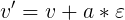 velocity += acceleration * epsilon