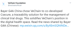excitecontent(25)•in #vechain•2057 days agoVeChain jointly develops blockchain with pharmaceutical giant Bayer ChinaBayer China employs VeChain for drug management It was revealed that a Chinese subsidiary of Germany&x27;s leading pharmaceutical company Bayer will partner wit...20$0.00excitecontent(25)•in vechain•2057 days agoVeChain jointly develops blockchain with pharmaceutical giant Bayer ChinaBayer China employs VeChain for drug management It was revealed that a Chinese subsidiary of Germany&x27;s leading pharmaceutical company Bayer will partner wit...20$0.00