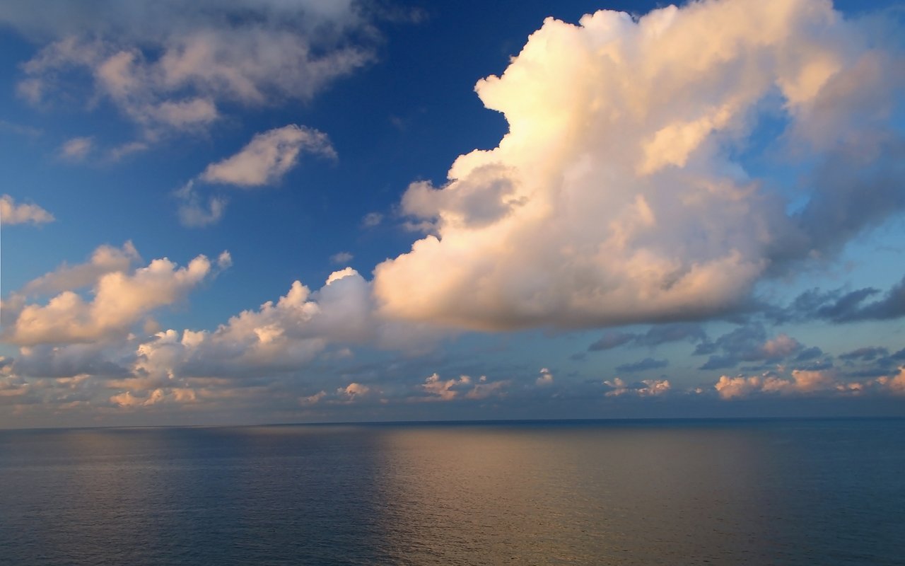 Baltic sea with clouds. A view of the vast horizon from the highest Polish cliffs.